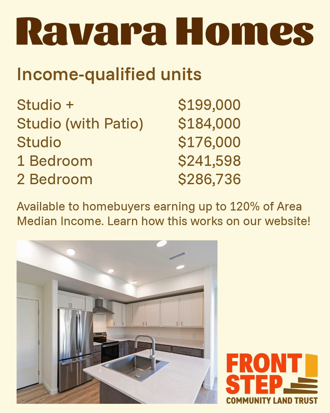 This project represents a years-long collaboration between Front Step and several other stakeholders to create more attainable housing in Missoula. Ravara includes both market-rate homes and permanently attainable homes through our community land trust. The homes are part of a planned community which intends to include a small neighborhood grocery, restaurant, a coffee shop, office space, and other neighborhood amenities.